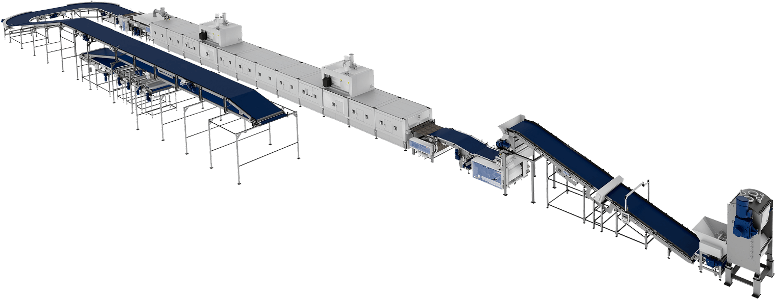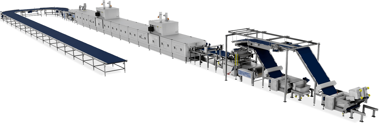 - Ideal for short-bake products and high-capacity processing